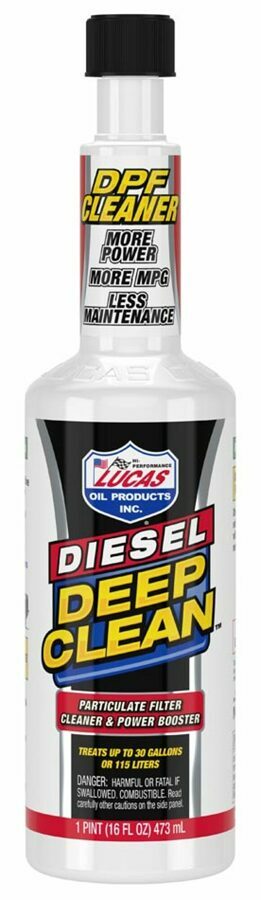 Description: Lucas Diesel Deep Clean is a new Lucas technology developed to reduce the cost and hassle of particulate filter maintenance. It is an excellent preventative maintenance product. It causes the fuel to burn much cleaner, thus eliminating a lot of particulate matter that would otherwise go into the exhaust system causing “regens.” It also cleans out much of the matter already trapped in the filter. This eliminates exhaust backpressure allowing the engine to run easier and cooler as well as lowering the aggravation and down time associated with particulate filters.