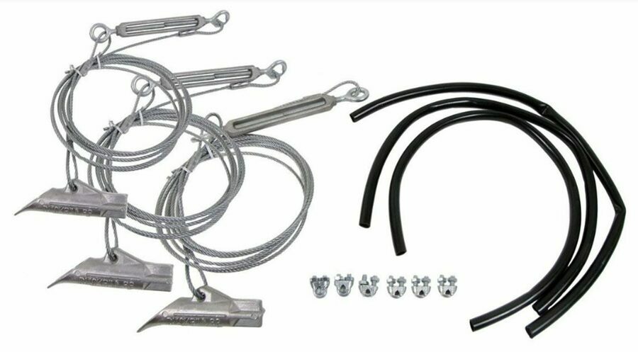 Model 88 DTS kit includes: (3) Duckbill anchors with 15' of wire rope per anchor attached (3) tree collars (6) 3/16" wire rope clamps