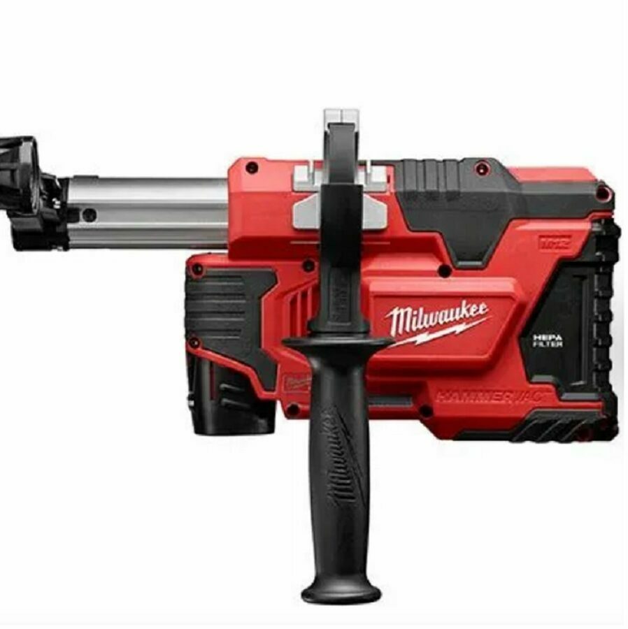 Description: The only universal tool of its kind on the market, the cordless Milwaukee® M12™ HAMMERVAC™ Universal Dust Extractor Kit delivers HEPA-standard debris filtration at the lowest cost of ownership. The HAMMERVAC’s universal handle system is compatible with major brands of SDS Plus rotary hammers and AC/DC hammer drills, so users can drill safely into concrete and masonry without purchasing a new drill. It features a certified HEPA filter that is replaced independently of the dust box, enabling users to maintain powerful suction at a low cost. In auto-on mode, the extractor turns itself on and off as you work for maximum productivity. Powered by an M12™ Compact REDLITHIUM™ Battery, the HAMMERVAC™ provides filtration for up to 160 holes on a single charge. For even longer runtime, utilize the M12 XC High-Capacity REDLITHIUM™ battery (sold separately). The kit includes an M12 Compact REDLITHIUM™ Battery and Charger, a HEPA filter, nozzle, 3 side-handle clamping collar assemblies and a carrying case.