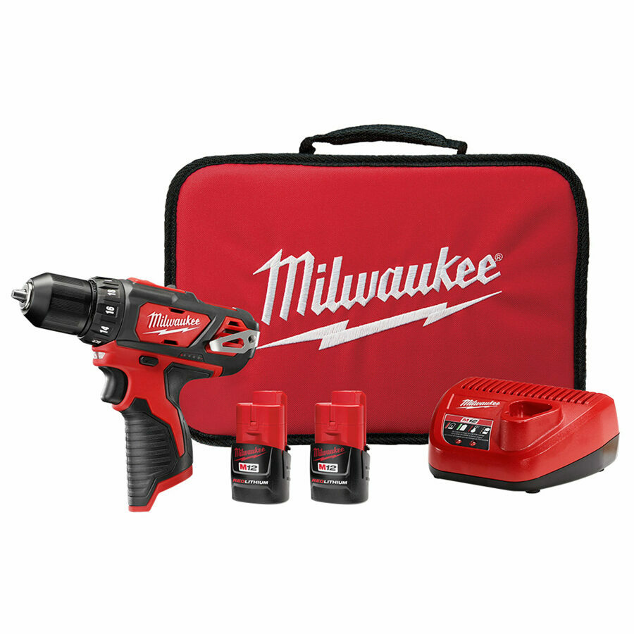 Details: Includes (1) M12™ 3/8” Drill/Driver (Tool Only) (2407-20 (2) M12™ REDLITHIUM™ CP1.5 Battery Pack (48-11-2401) (1) M12™ Lithium-ion Battery Charger (48-59-2401) (1) Carrying Case