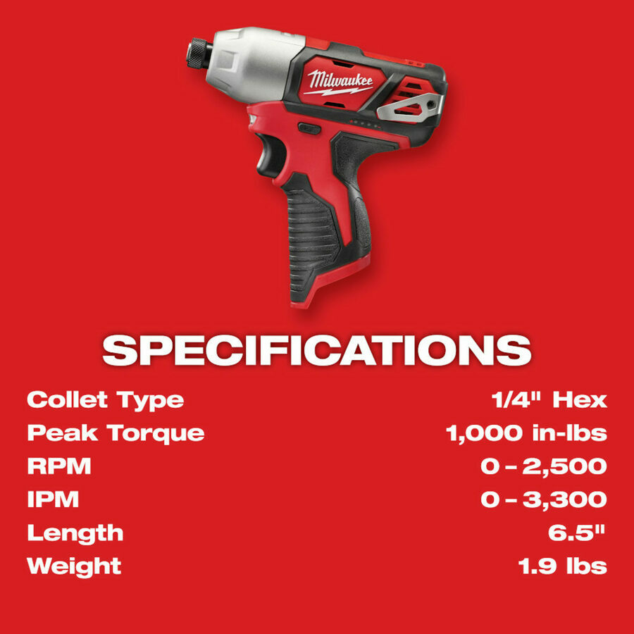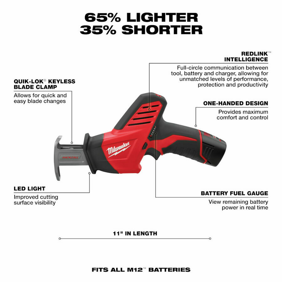 Details: Includes (1) M12™ 3/8” Drill/Driver (2407-20) (1) M12™ HACKZALL® Recip Saw (2420-20) (1) M12™ ¼” Hex Impact Driver (2462-20) (2) M12™ REDLITHIUM™ CP1.5 Battery Pack (48-11-2401) (1) M12™ Lithium-ion Battery Charger (48-59-2401) (1) M12™ Work Light (49-24-0146) (1) Contractor Bag (2) Belt Clip