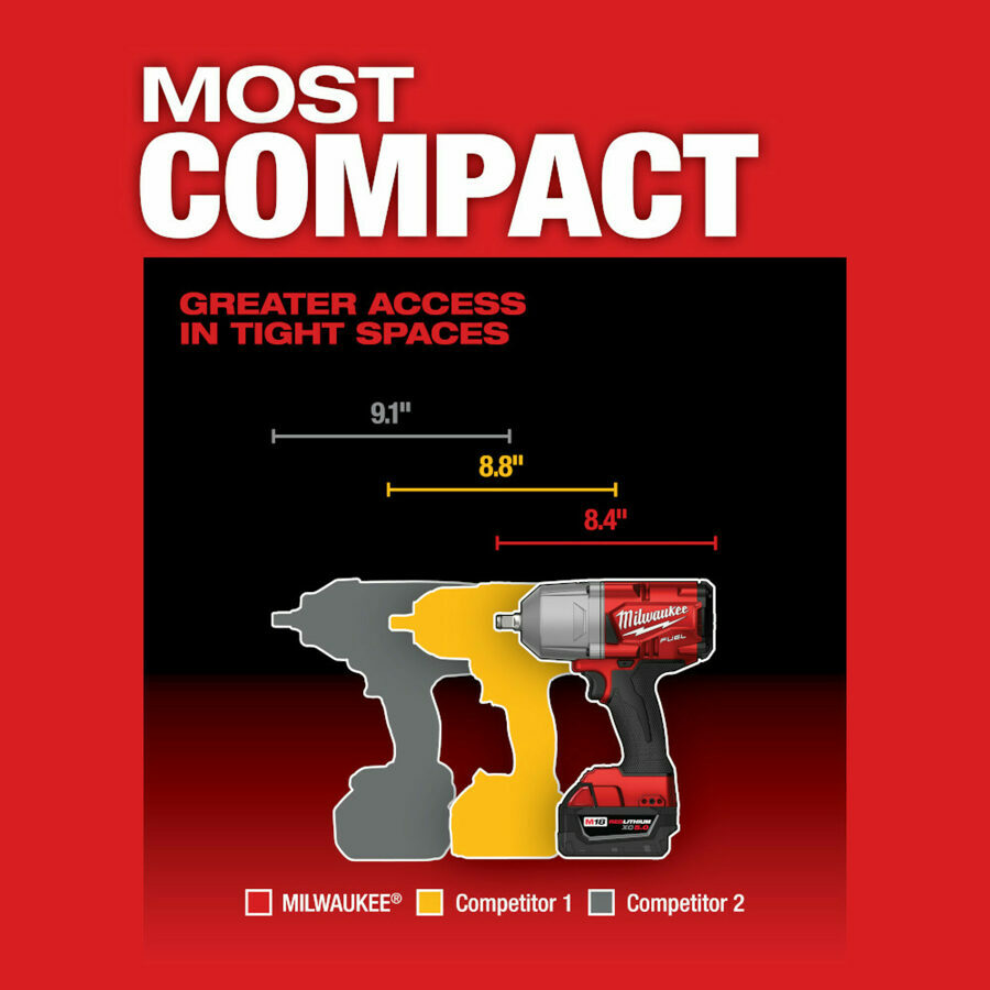 Most compact cordless High Torque Impact Wrench in its class at 8.39" in length