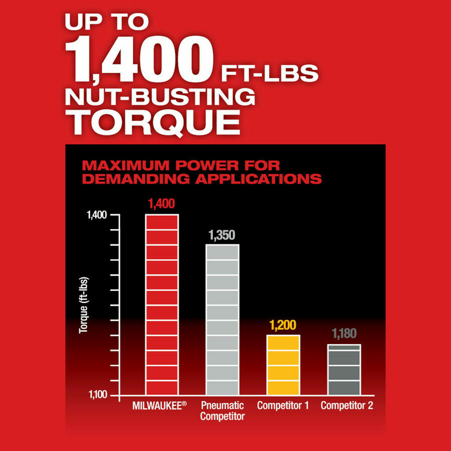 Provides maximum productivity by removing stubborn and high torque fasteners up to 2X faster than the competition