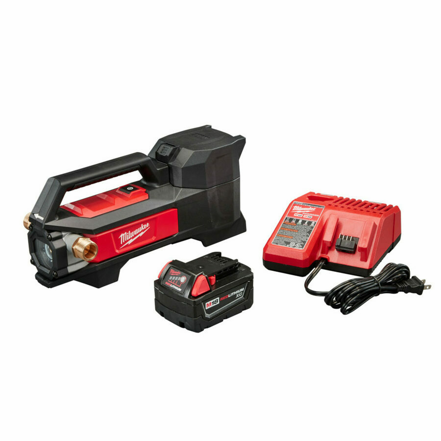 Description: M18™ Transfer Pump offers you faster water transfers and service calls. This portable water transfer pump is the industry’s first cordless transfer pump, offering you the fastest setup. With an innovative self-priming pump, you can connect and go quicker than ever. The Milwaukee transfer pump's flexible impeller and powerful pump move water at up to 480 Gal. per hour, generates up to 18 ft. of lift and produces up to 75 ft. of head height. As a part of the MILWAUKEE® M18™ System, REDLITHIUM™ battery packs power the water transfer pump, which delivers up to 240 Gal. moved per charge on an XC5.0 battery pack. Onboard REDLINK™ Intelligence can recognize when the tool stops moving water and automatically shuts itself off to avoid dry pumping. REDLINK™ also provides optimized performance and overload protection in abusive situations. In addition to the M18™ Transfer Pump, this kit includes an M18™ & M12™ Multi-Voltage Charger, and an M18™ REDLITHIUM XC Battery.