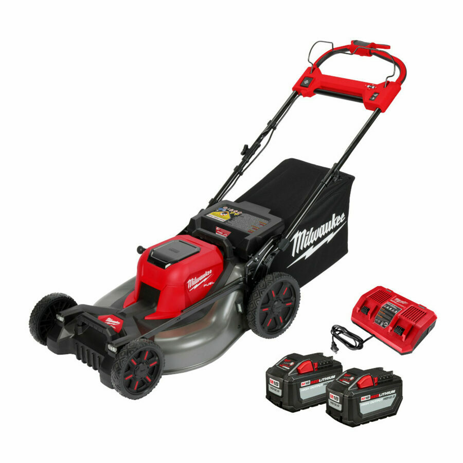 Details: Includes: (1) M18 FUEL™ 21" Self-Propelled Dual Battery Mower (2) M18 REDLITHIUM™ HIGH OUTPUT™ HD12.0 Battery Pack (48-11-1812) (1) M18™ Dual Bay Simultaneous Rapid Charger (48-59-1802) (1) Grass Bag (1) Mulch Plug (1) Rear Side Discharge Chute