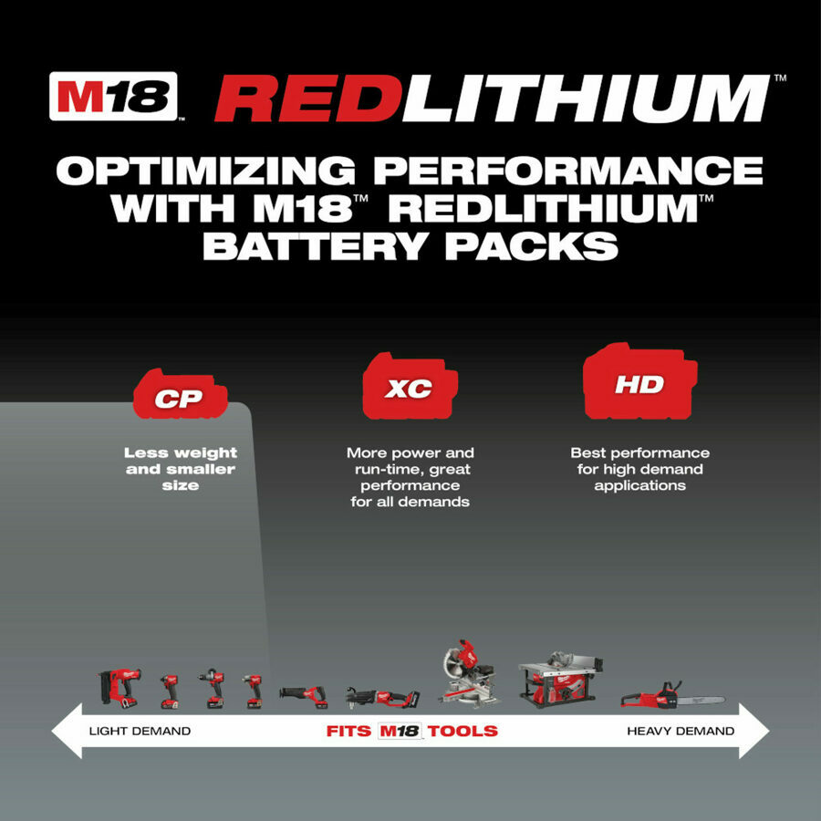 Details: Includes (2) M18™ REDLITHIUM™ XC5.0 Extended Capacity Battery Pack (48-11-1850)