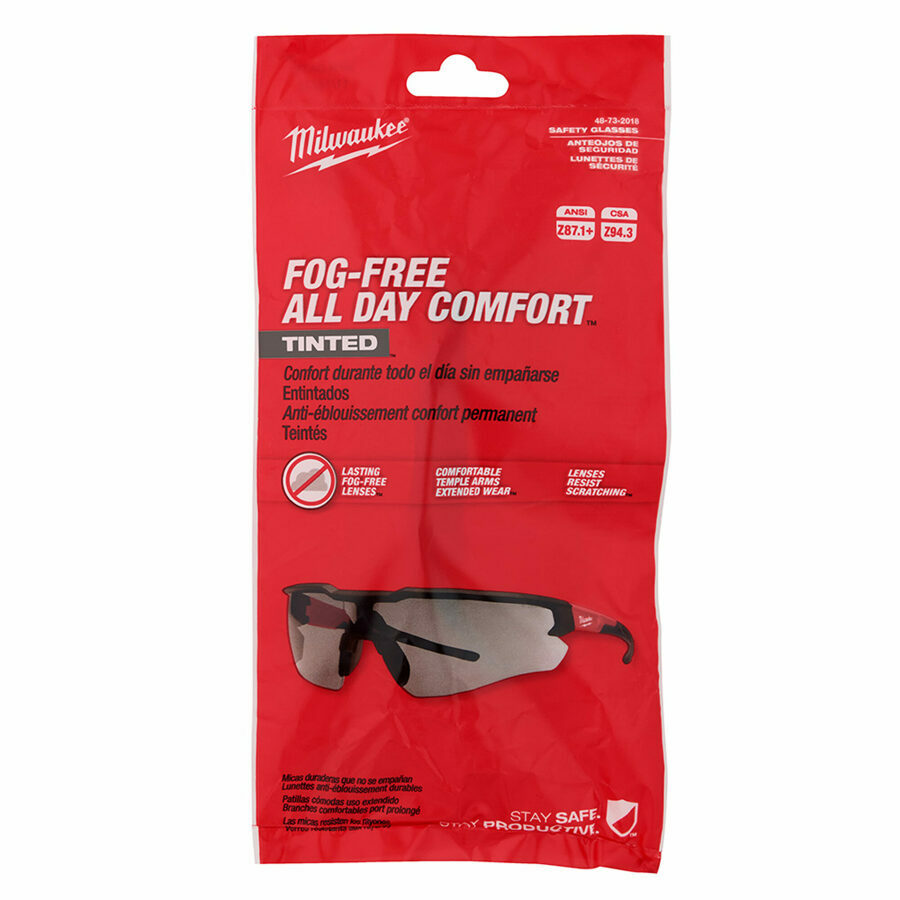 Description: Our Fog-Free Safety Glasses are designed for all day comfort. This protective eyewear has fog-free lenses, so you maintain clear vision in the toughest conditions and a lens coating to reduce scratching. The MILWAUKEE® Fog-Free Safety Glasses have comfortable temple arms designed for extended wear. These fog-free protective glasses also have an integrated flexible nose bridge that provides you with more comfort. The yellow-tinted lenses make environments appear brighter, making them ideal for working in low light, while the gray lenses are best for transitioning between indoor and outdoor work.