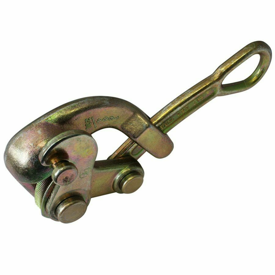 Description: Cable Puller with Latch 1/8inches - 1/2inches. Designed for use on EHS and Common Grade Guy Strand. Latch helps hold the cable in the jaw.