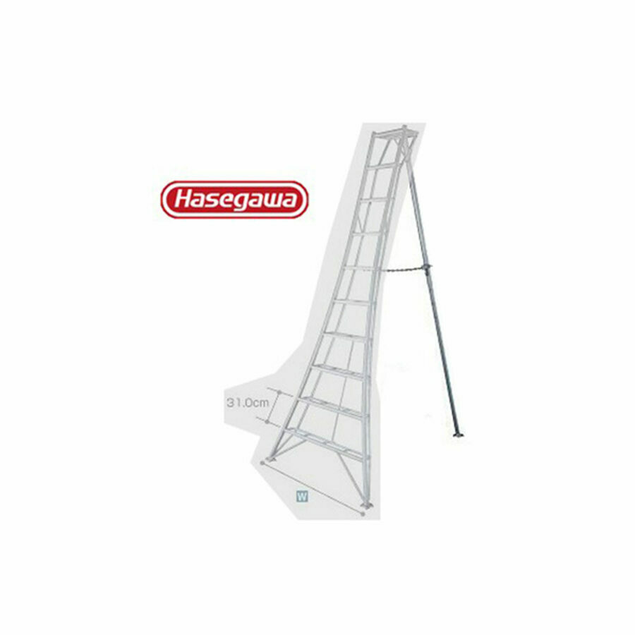 Description: Hasegawa Tripod Ladders are the safest, most stable and practical garden ladders around. The wide base, deep steps, telescopic back leg, as well as broad clawed feet and flat top make the Hasegawa Tripod Ladder incredibly safe and easy to use. Similar to the design of the Eiffel Tower, your weight is directed downwards and outwards, pinning the ladder to the ground. The back leg adjusts quickly and easily up to 2 ft in 6" stops with a spring-loaded pin. Extending 6" and shortening 18" for use on slopes and uneven terrain. Adding rubber feet gives the ladder added stability on hard surfaces. The ladders are welded, extruded aluminum construction, weatherproof, strong and very light. Double rungs are easy on the feet, and resist getting muddy or slippery.