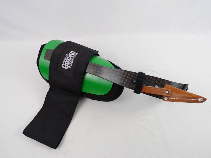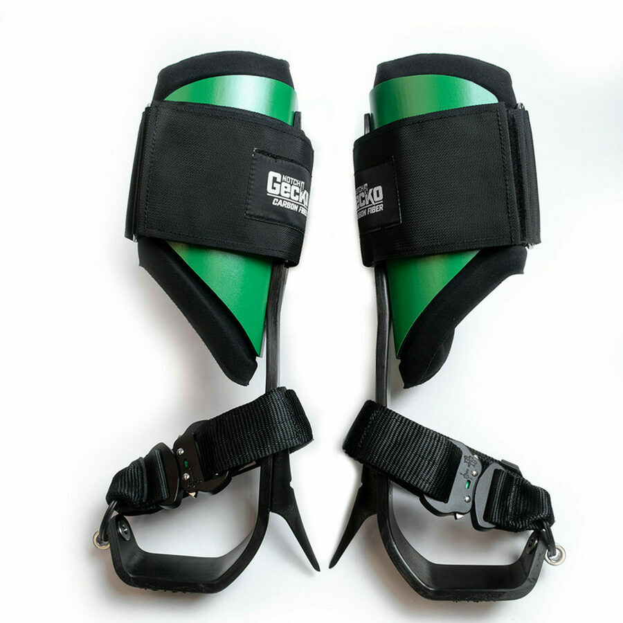 Description: Notch Gecko Carbon Fiber Climbers are the Lamborghinis of the tree spiking world. The ultra-light carbon fiber shank is ergonomically designed for a comfortable fit all day and features a new proprietary fiber lay for extra strength. The thermo-molded composite upper cuffs give an impact-resistant and adjustable fit, and the quick connect lower straps allow for a quick adjustment that stays tight every time you take your gaffs off.