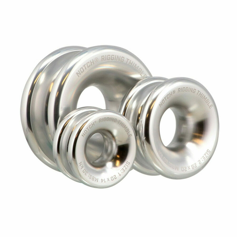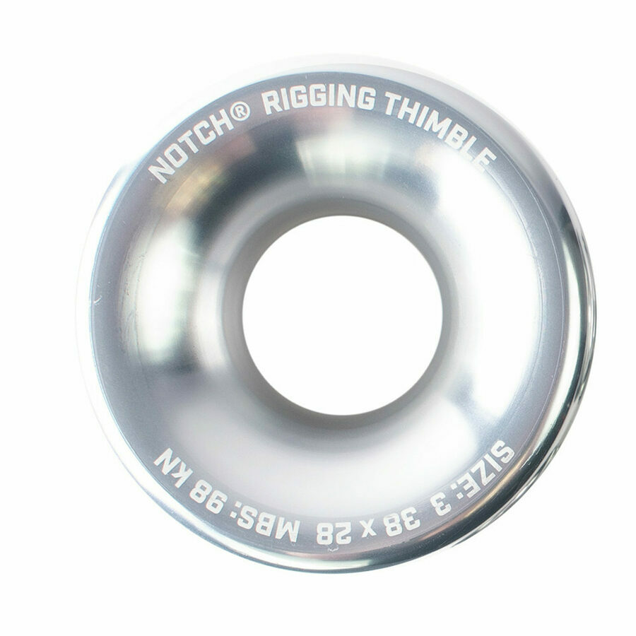 Description: Notch Rigging Thimbles were designed by arborists and built by engineers. They are purpose-built for the arboriculture industry, with improvements over the original marine products on the market. Splice them into a sling for use as a rigging point or redirect.