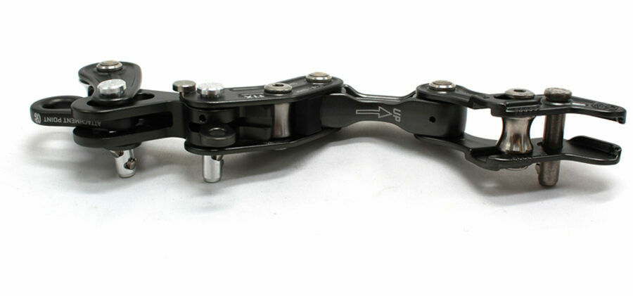 Integrated central tending point for attachment to a chest harness Improved sealed ball bearing pulley