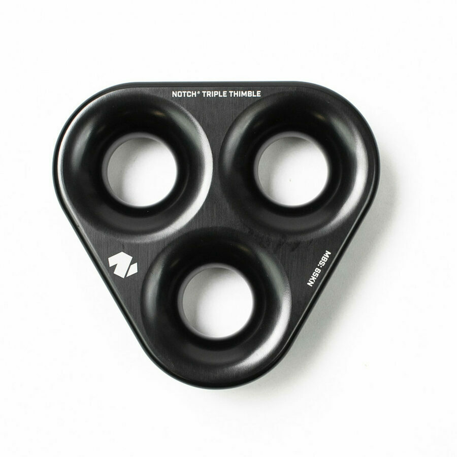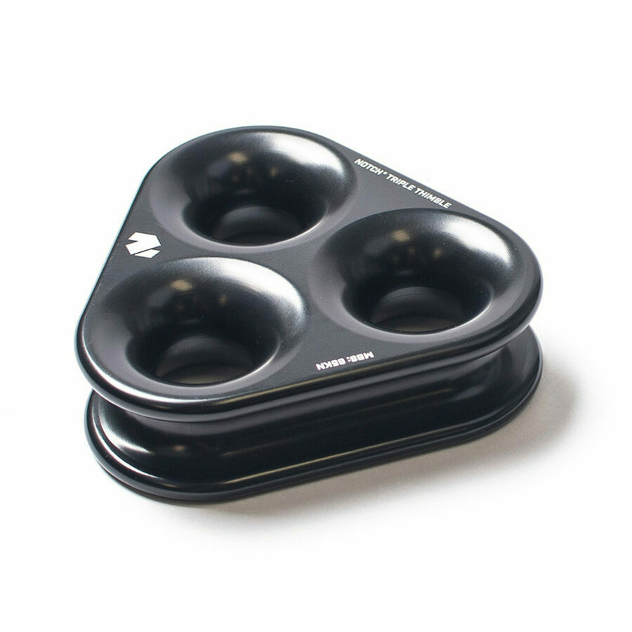 Description: Notch Hard Coated Triple Thimble allows canopy LIFESPAN based friction management in the rigging system.