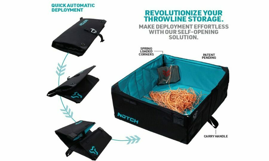 Description: Notch Throwline Pop Box. Spring loaded self opening throwline storage, Quick deployment, Tangle free transport, Ease of Storage