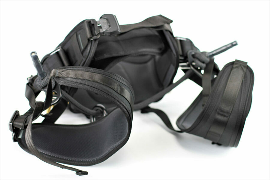 Contoured mesh padding on the back and legs provides excellent breathability and comfort, while the elastic waistband keeps the saddle sitting snugly on your waist. With high quality materials that are strong without being bulky, the harness is also incredibly lightweight.