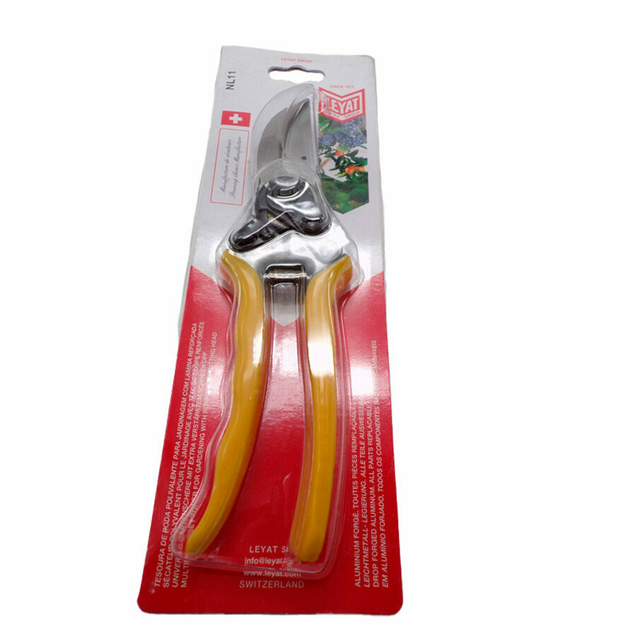 Description: Leyat multipurpose hand shears for gardening with a reinforced cutting head. The Leyat NL11 is an exceptionally strong tool with a cutting head convenient for all type of usual pruning work. The NL11 is similar to the NL2, but is designed with an anvil that is easily replaceable.