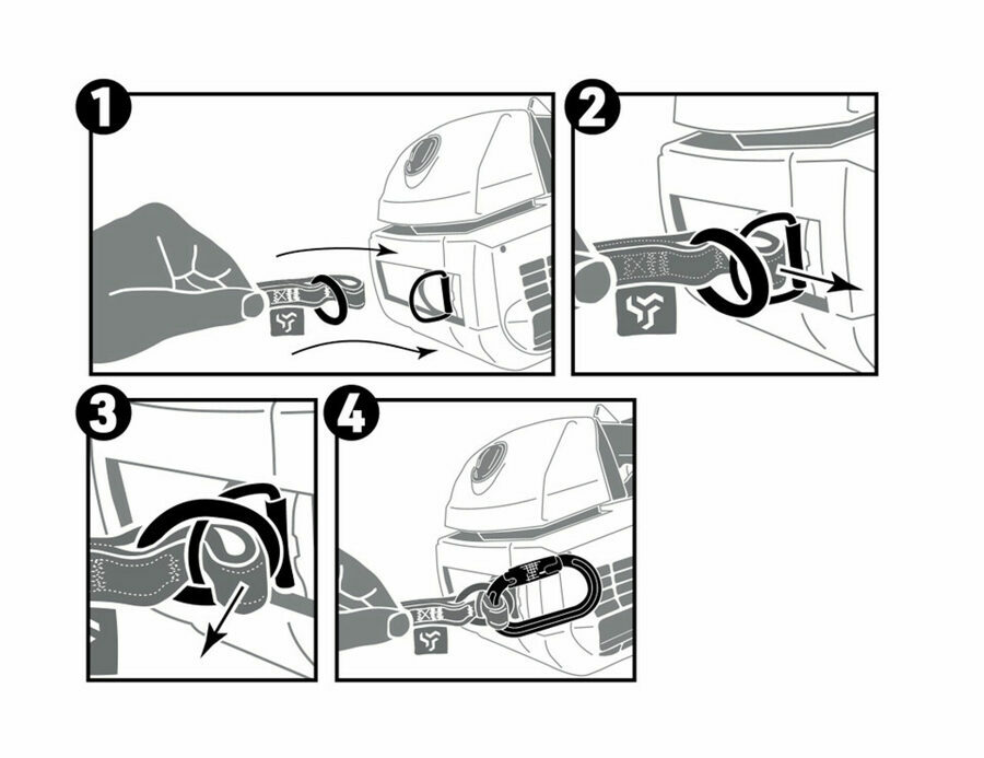 Carabiner acts as a storage ring, and hangs easily on harness tool clips