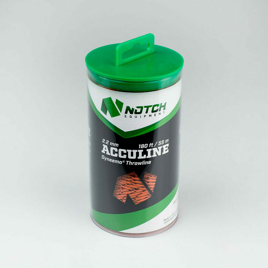 Description: Notch Acculine is a high strength, durable throwline made with Dyneema® fiber. This high-tech fiber isn't just strong - its also low stretch and lightweight. The urethane coating adds a high degree of abrasion resistance, and the high-visibility color means you'll never lose track of your throw line