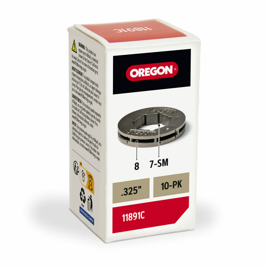 Description: The 11891 rim has a .325" pitch and 8 teeth. Oregon rims offer the ultimate cutting system performance by providing a smoother cutting experience and less chain wear when compared to spur sprockets. The rim's radial port design uses centrifugal force to throw off sawduck and debris. Wear-depth indicators show when it's time to replace the rim. Replace the rim every two chain loops. This rim works with certain Dolmar, Husqvarna, Jonsered, Makita, McCulloch, Olympyk, Partner, Pioneer, Poulan and Stihl chainsaw models. Check the fit guide to see if this rim works with your saw.