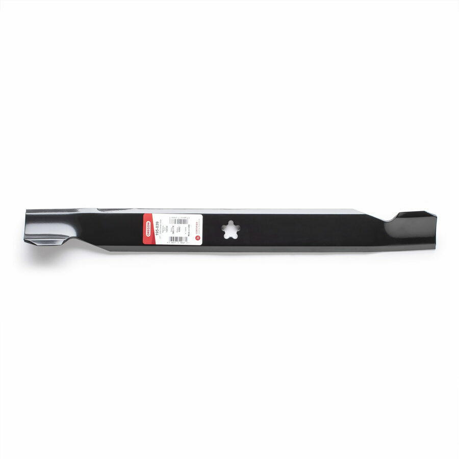 Description: Oregon® 100 Series Blades offers Ultra X-tended Cutting Length™, which means that each blade delivers its maximum mulching capability per rotation. Add that with our double bevel technology and the overall blade noise is reduced by up to 1.5 decibels. The 195-039 blade is made from Boron Steel that allows for the perfect balance between durability and ductility.