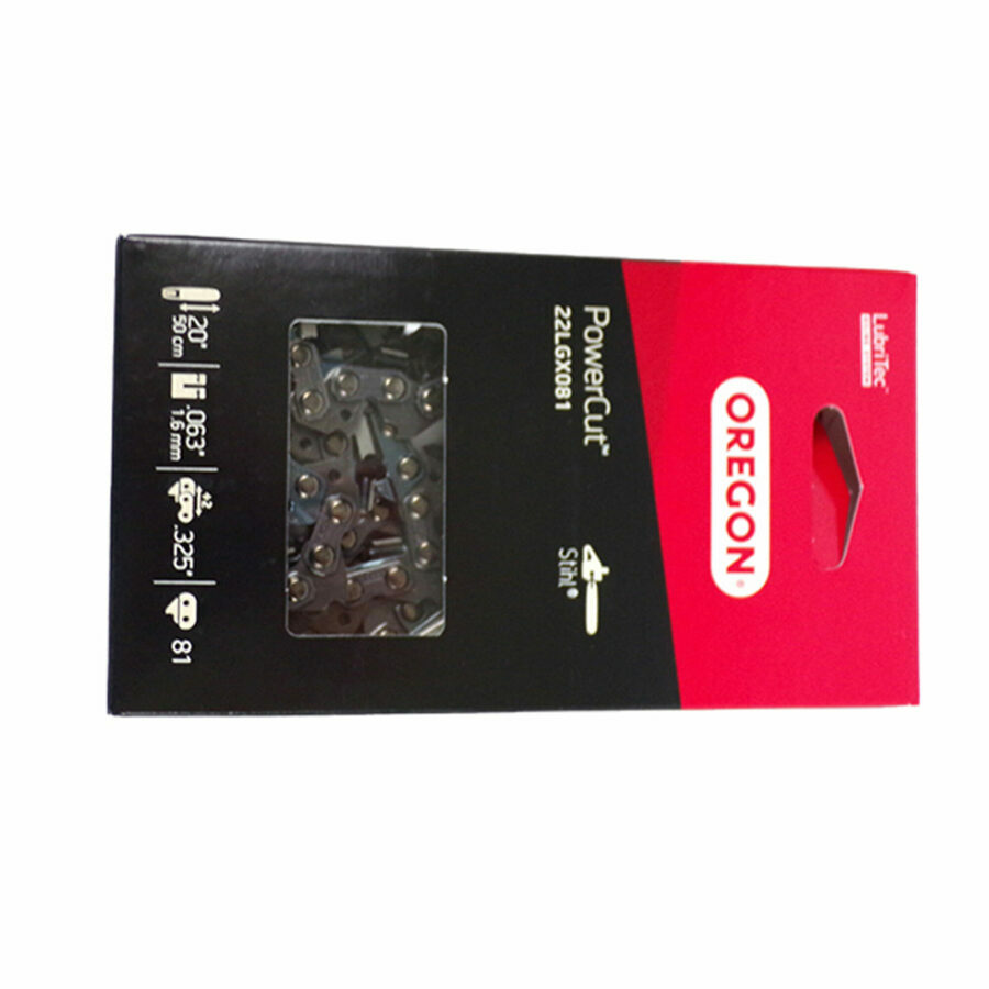 Description: The Oregon 22LGX081G PowerCut™ Saw Chain is a .063" gauge chain for experienced loggers and tree care workers who use .325" pitch saws. This saw chain features low-vibration, full chisel cutters that cut through timber quickly and precisely. The depth gauges are designed to provide maximum chain performance and a smooth cutting experience on higher output, .325" pitch chainsaws. The 22LGX081G saw chain has compatible fit with chainsaws equipped with .325" pitch, .063" gauge saw chain on a 20" guide bar. Check the Fit Guide for a complete list of all the Stihl® chainsaws this chain fits.
