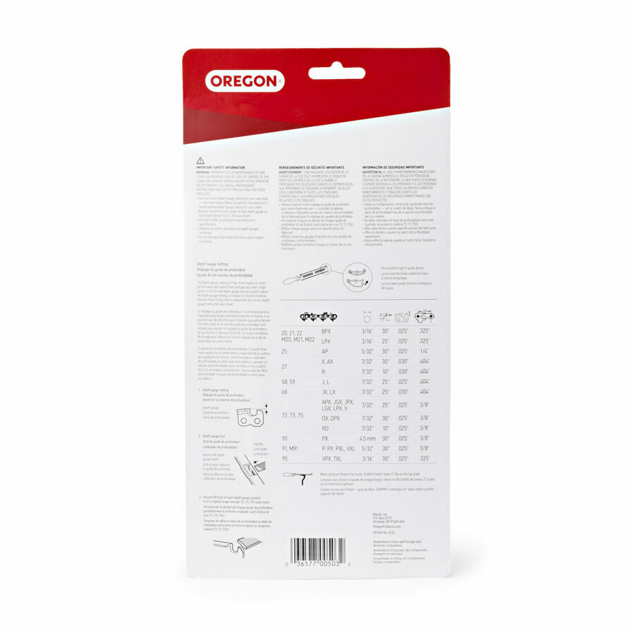 Filing chart and instructions on the back of the package helps to file chain properly.