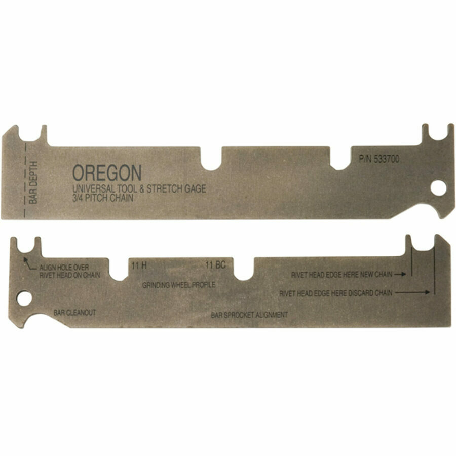 Description: A handy, multi-purpose maintenance tool, this beneficial gadget is assistant to any logger performing common 3/4" harvester bars and chain maintenance tasks such as aligning sprocket to guide bar, cleaning and straightening the bar groove, measuring the bar groove depth, measuring for chain stretch and gauging grinding wheel dress.