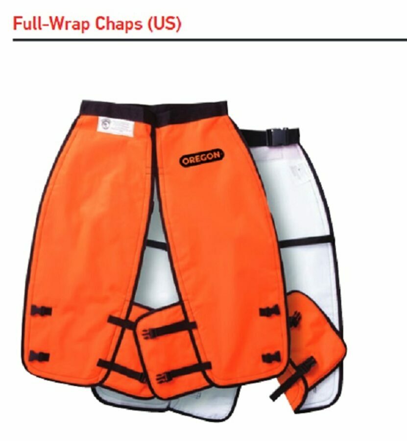 Description: Comfortable protection for your legs while logging or using your chainsaw in full-wrap chaps design, with 8 layers breathable warp knit chainsaw protection.