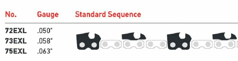 Description: Oregon 72EXL has a reshaped cutter and proprietary grind technology for superior performance, sharpness and consistency (replaces 72LGX). This low-vibration, full chisel cutter chain is designed to maximize every cut with less effort.