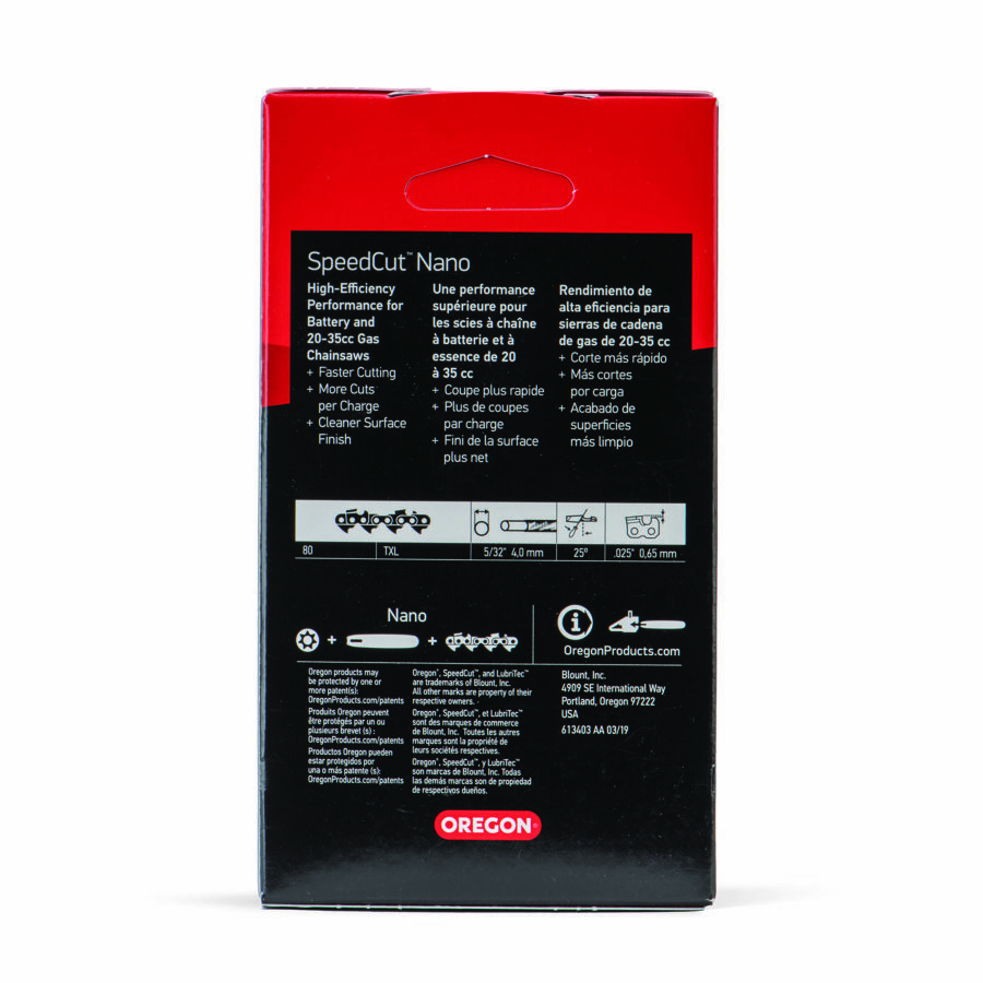 Must be used in combination with an Oregon SpeedCut Nano guide bar and sprocket; not compatible with standard .325" pitch cutting systems