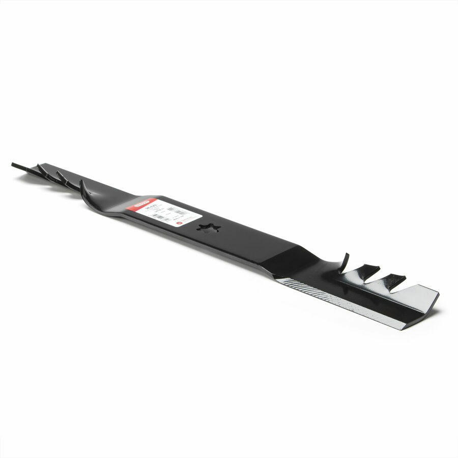 Details: High-lift: Aggressive blade angle increases air flow to push debris up and out for superior bagging or side discharge