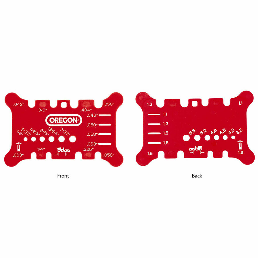 Details: Measures the chain pitch, bar groove width, chain gauge and file size.