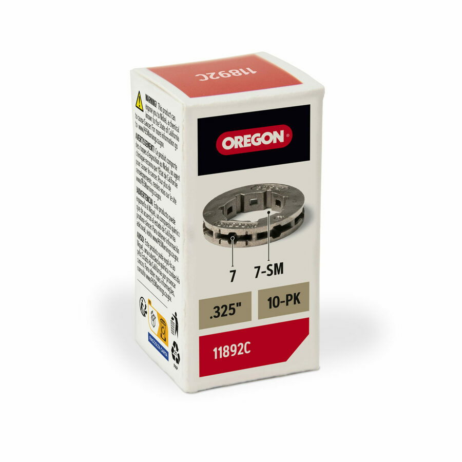 Description: Oregon rims offer the ultimate cutting system performance by providing a smoother cutting experience and less chain wear when compared to spur sprockets. The rim's radial port design uses centrifugal force to throw off sawduck and debris. Wear-depth indicators show when it's time to replace the rim. Replace the rim every two chain loops. This rim works with certain Dolmar, Husqvarna, Jonsered, Makita, McCulloch, Olympyk, Partner, Pioneer, Poulan and Stihl chainsaw models. Check the fit guide to see if this rim works with your saw.
