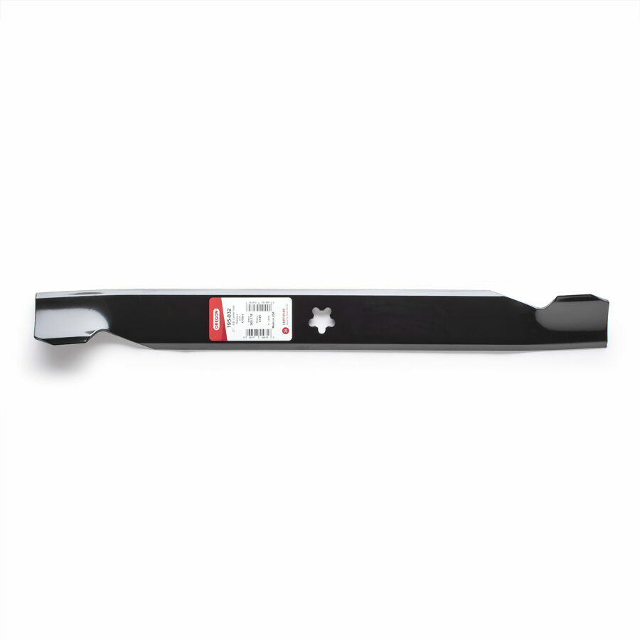 Description: Our Oregon® 100 Series lawn mower blade is made from Boron steel, which allows for the perfect balance of durability and ductility. With the Ultra X-tended Cutting Length™, the 195-032 has improved cutting efficiency per rotation. The double bevel technology helps reduce overall blade noise by up to 1.5 decibels.