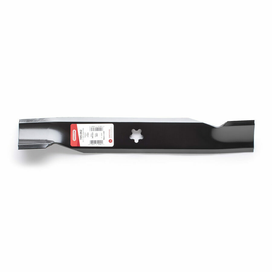Description: Our Oregon® 100 Series lawn mower blade is made from Boron steel, which allows for the perfect balance of durability and ductility. With the Ultra X-tended Cutting Length™, the 195-062 has improved cutting efficiency per rotation. The double bevel technology helps reduce overall blade noise by up to 1.5 decibels.