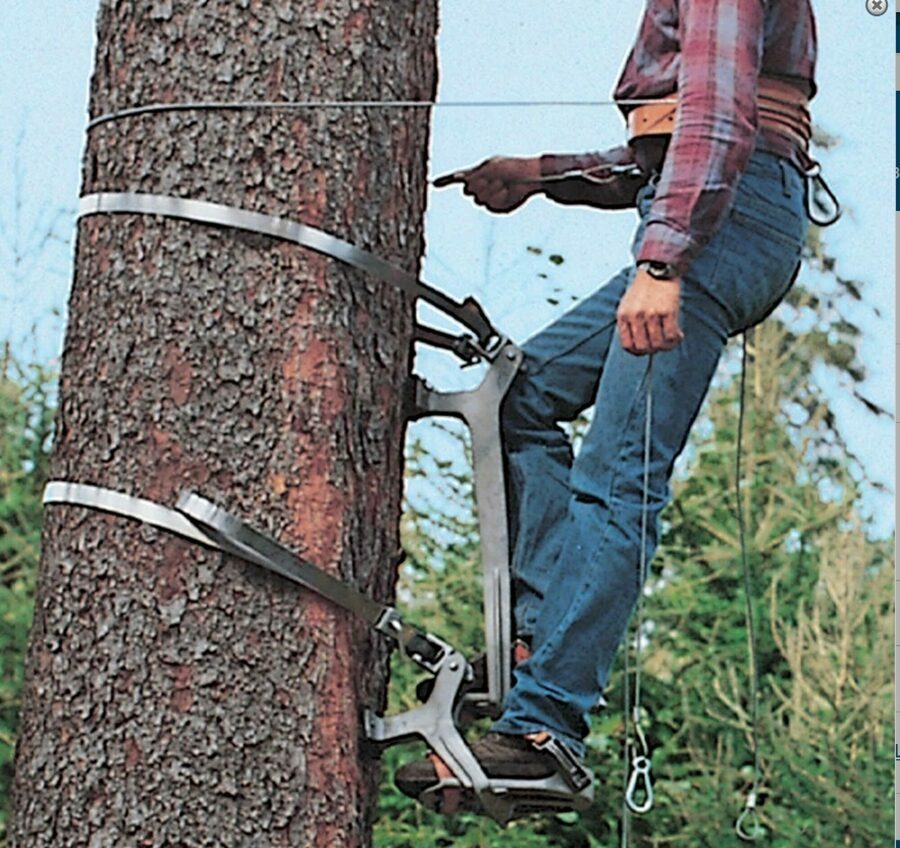 Description: Swiss Tree Grippers Move safely up, down, or around a tree without damaging the bark! Your hands are left free to work. Constructed of durable, high quality materials for maximum user safety. Use to climb trees up to 26˝ in diameter. Includes two suspension assemblies, a large one for the right foot and a small one for the left foot.