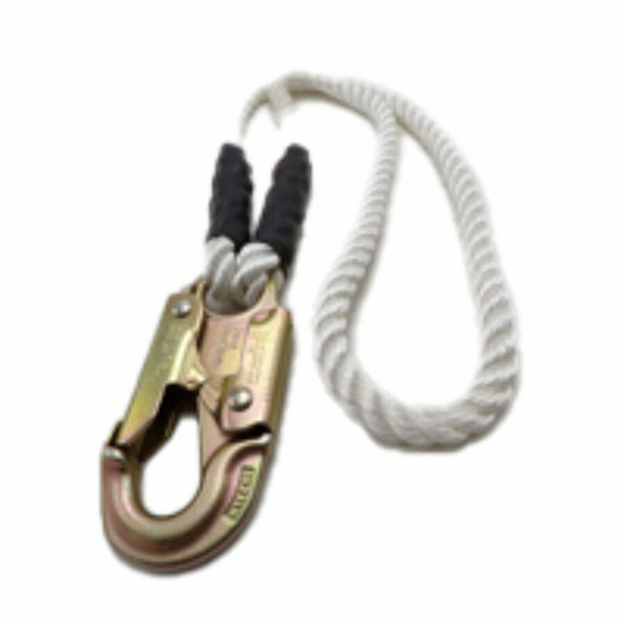Description: 1/2” diameter, 3 strand polyester with double-locking safety snap hooks and includes a prusik runner (PRT-160) for smooth adjustability. The forged steel safety snap hook is rated at 23 kN.