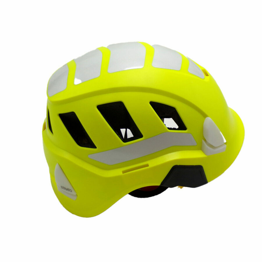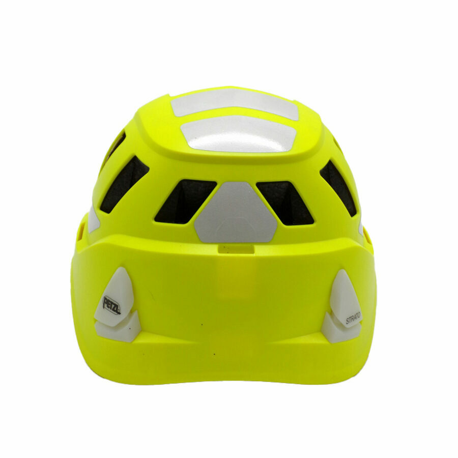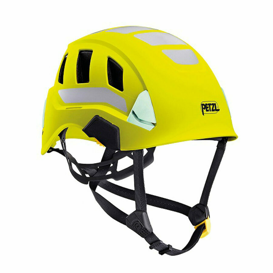 Description: Petzl Strato Hi-Viz Lightweight, ventilated high-visibility helmet The STRATO VENT helmet is very lightweight and comfortable, thanks to its CENTERFIT and FLIP&FIT systems, which guarantee that the helmet fits securely on the head. The adjustable-strength chinstrap makes it ideal for both work at height and on the ground. It has ventilation holes that allow airflow through the helmet. With its potential for integration of a Petzl headlamp, hearing protection, and multiple accessories, it is an entirely modular helmet, thus responding to the specific additional needs of professionals. The high visibility version features a fluorescent outer shell with phosphorescent clips and reflective bands, for optimal visibility of the worker, day or night.