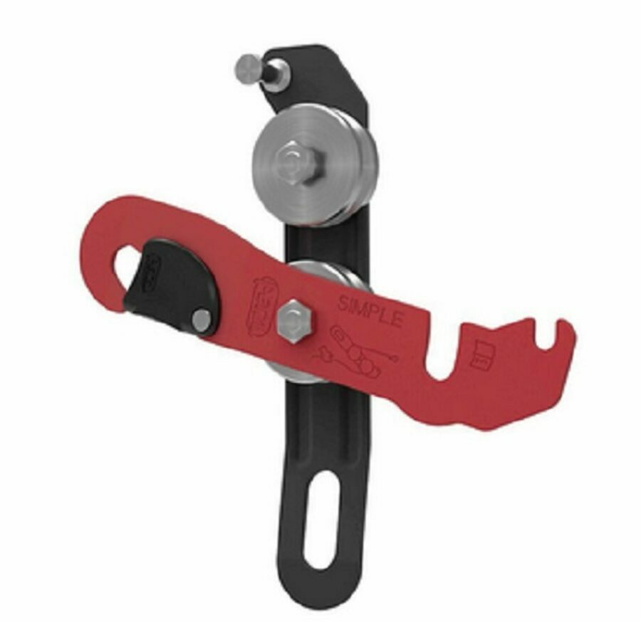 Description: SIMPLE, as its name implies, is an easy-to-use caving descender. It can be used with 8.5 to 11 mm diameter low stretch kernmantle ropes. Reduced bulk and low weight simplify progression in narrow passages. The pulleys can be rotated or replaced to prolong the duration of use over time.