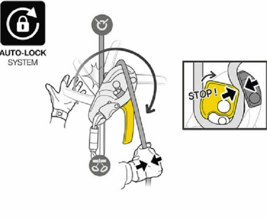 Versatile: - once locked, the rope can be taken up without having to manipulate the handle, allowing for easy short ascents, for example - cam can be manipulated to take up slack easily or belay a lead using climbing techniques