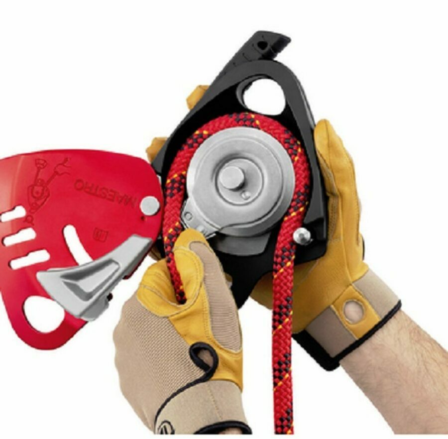 Description: MAESTRO L is a descender designed for technical rescue operations. It facilitates manipulation of heavy loads, for lowering or hauling, and may be used in both the primary system or in a back-up belay. This versatility allows rescuers to adapt to any situation they may encounter on the rescue scene. The ergonomic handle and integrated brake allow for comfortably controlled descent. Shifting from lowering position to hauling position is immediate, without the need to transfer the load. The integrated progress-capture pulley has a large diameter sheave mounted on sealed ball bearings, ensuring excellent hauling efficiency. The AUTO-LOCK system automatically locks the rope when the handle is not in use. Once locked, the rope can be taken up without having to manipulate the handle. The MAESTRO L descender is compatible with 12.5 to 13 mm ropes and allows handling of loads up to 280 kg.