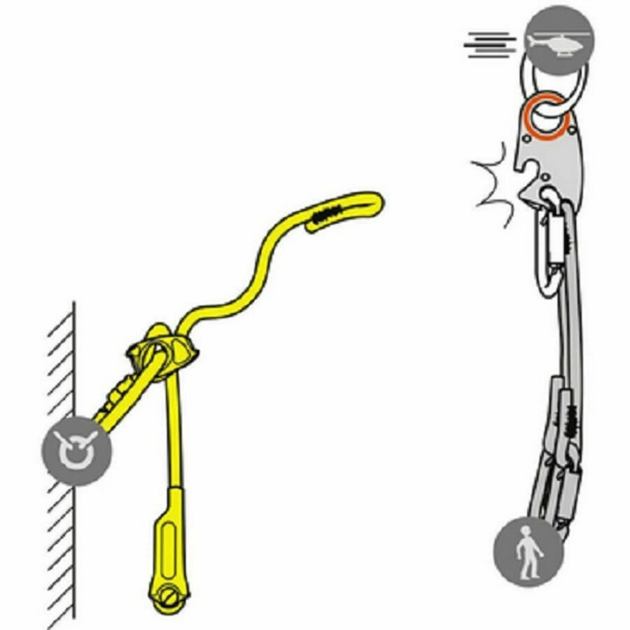 Description: The LEZARD lanyard is designed for helivac at altitude. It allows the drop-off/recovery phases to be secured thanks to an adjustable arm that can be instantly ejected to free the victim, the rescuer and the helicopter if the latter needs to suddenly leave its stationary position. Handling the LEZARD helivac lanyard is easy thanks to the instant identification of the color-coded attachment elements and the very quick and precise adjustment of the adjustable arm with the ADJUST rope adjuster.