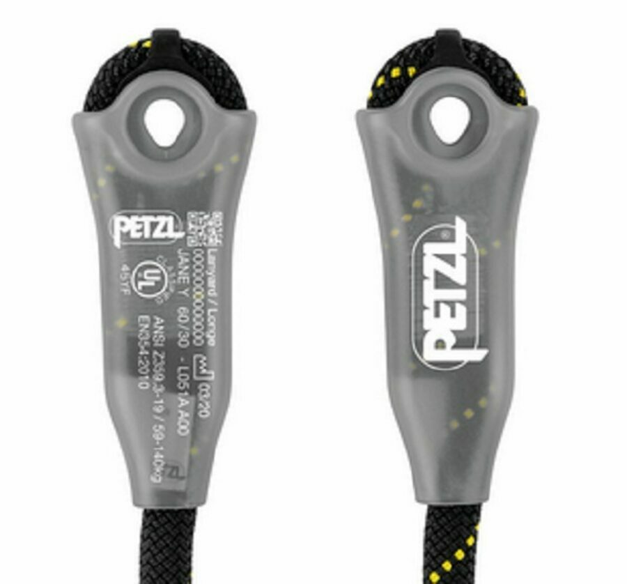 Description: JANE-Y for fall arrest lanyard is a non-adjustable dynamic rope lanyard that can be combined with an ABSORBICA energy absorber to make a double lanyard with energy absorber. The plastic sheaths hold the carabiners in position and facilitate clipping while protecting the terminations from abrasion. It has two symmetrical ends and is available in two lengths: 60 and 100 cm.