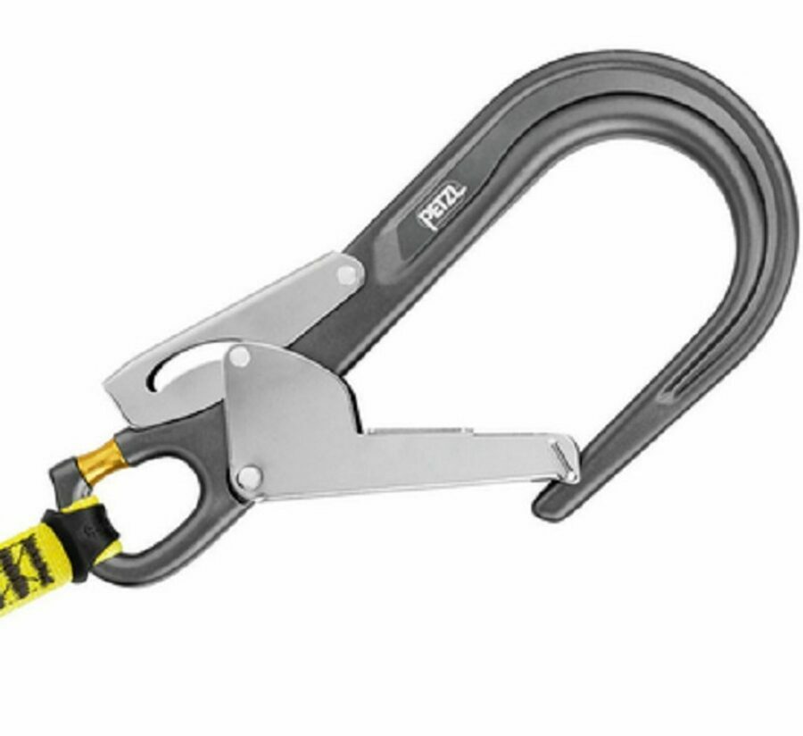 Gated connection point allows the MGO OPEN to be directly installed at the end of ABSORBICA-I, ABSORBICA-Y, JANE, PROGRESS or PROGRESS ADJUST-type double lanyards and GRILLON-type work positioning lanyards. If the lanyard is damaged, the connector can thus be reused