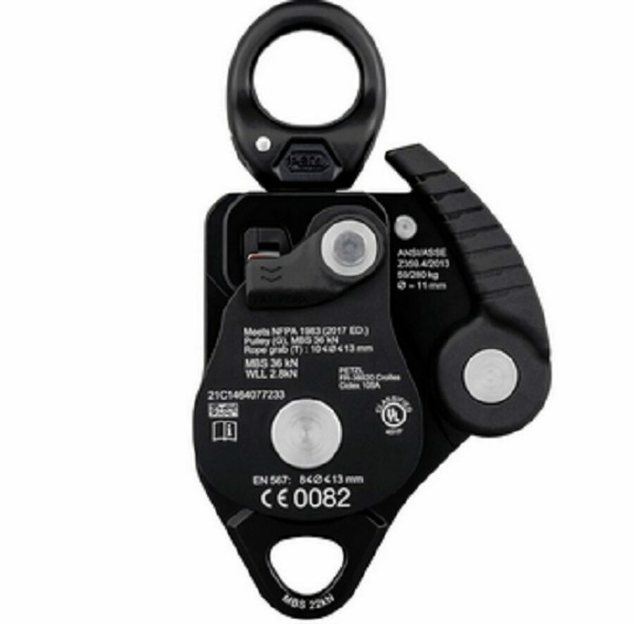 Facilitates operations, thanks to the swivel: - Allows pulley to be oriented under load - Accommodates up to three carabiners - Swivel and auxiliary attachment point allows the use of ropes and slings for easier rigging