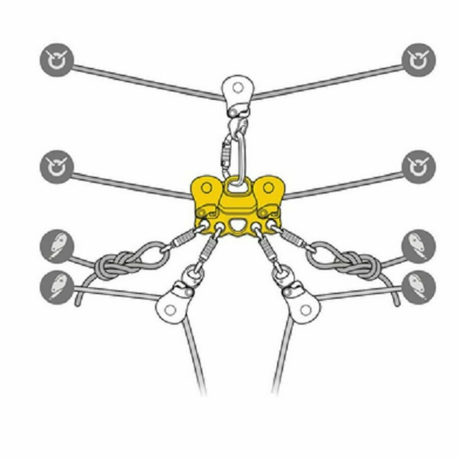 Details: An integrated solution designed to simplify setting up rescue systems on tensioned highlines: the REEVE pulley limits the number of connectors and the height of the system, thanks to its compact design.