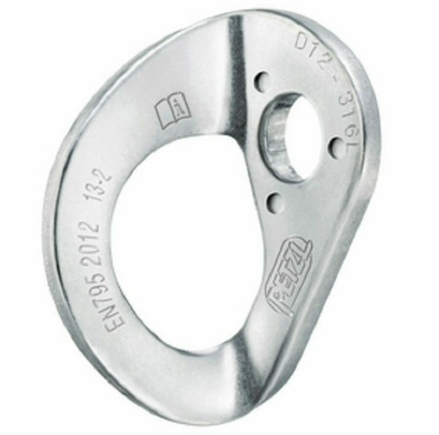 Prevents wear of carabiners: the thickness of the hanger and the rounded edges of the connection hole limit wear of carabiners