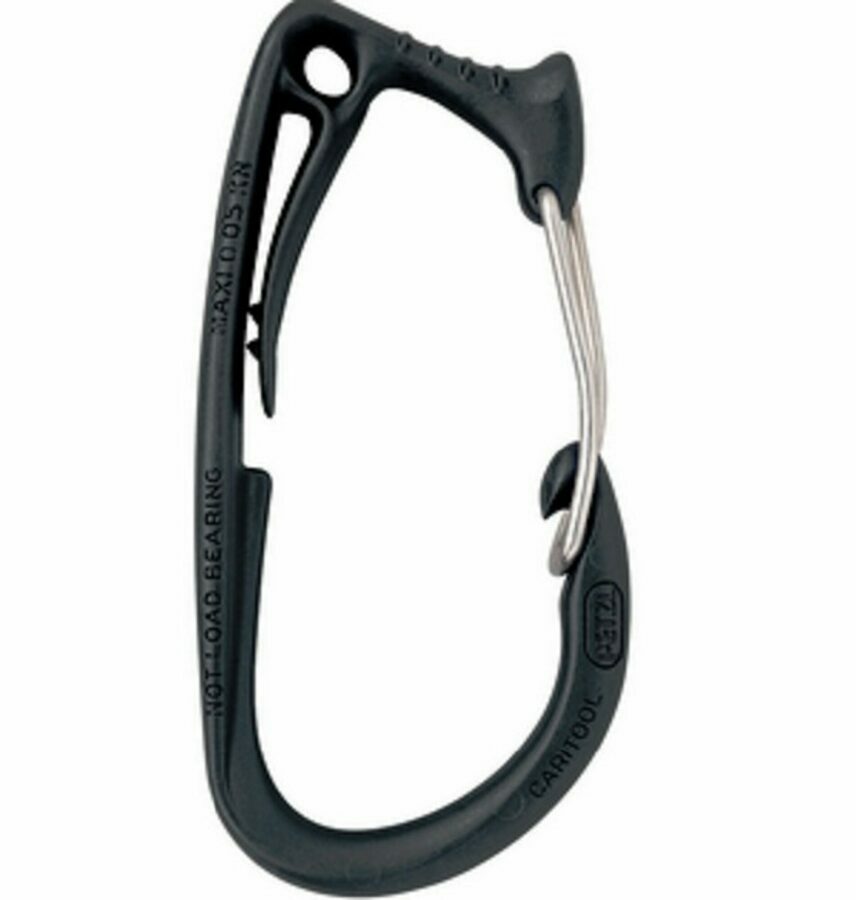Description: Increase your gear carrying options with the CARITOOL. A tool many arborists enjoy on their harnesses for quick tool storage. Compatible with the slots on most Petzl harnesses and also attaches to the webbing waist belts of other harnesses. Lightweight, durable and stable. Nose on top rail allows the user to stack gear on top while gaining access to screws, nuts, or other gear when the CARITOOL is loaded with multiple pieces. Small upper hole for attaching a keeper cord for tools to avoid losing them.