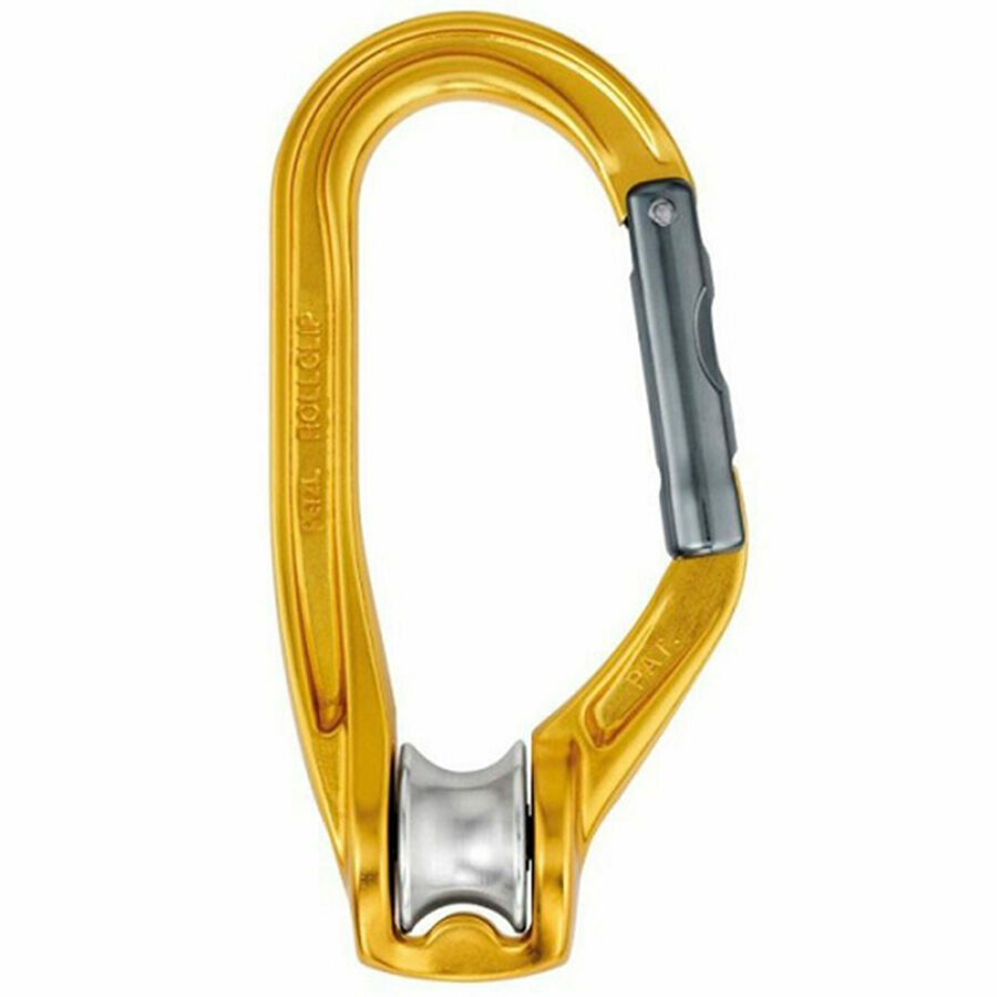 Description: ROLLCLIP A is a pulley-carabiner with a gate opening on the pulley side that facilitates installation of the rope when the pulley is fixed to the anchor. ROLLCLIP A may be used with a CAPTIV positioning bar to favor loading of the carabiner along the major axis, to limit the risk of it flipping and to keep it integrated with the device.