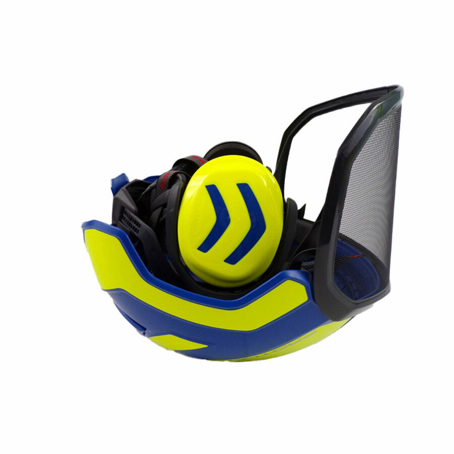 Includes chinstrap for work aloft. Discrete channel for the chin strap was designed to prevent the chin strap from slipping under the ear protector.